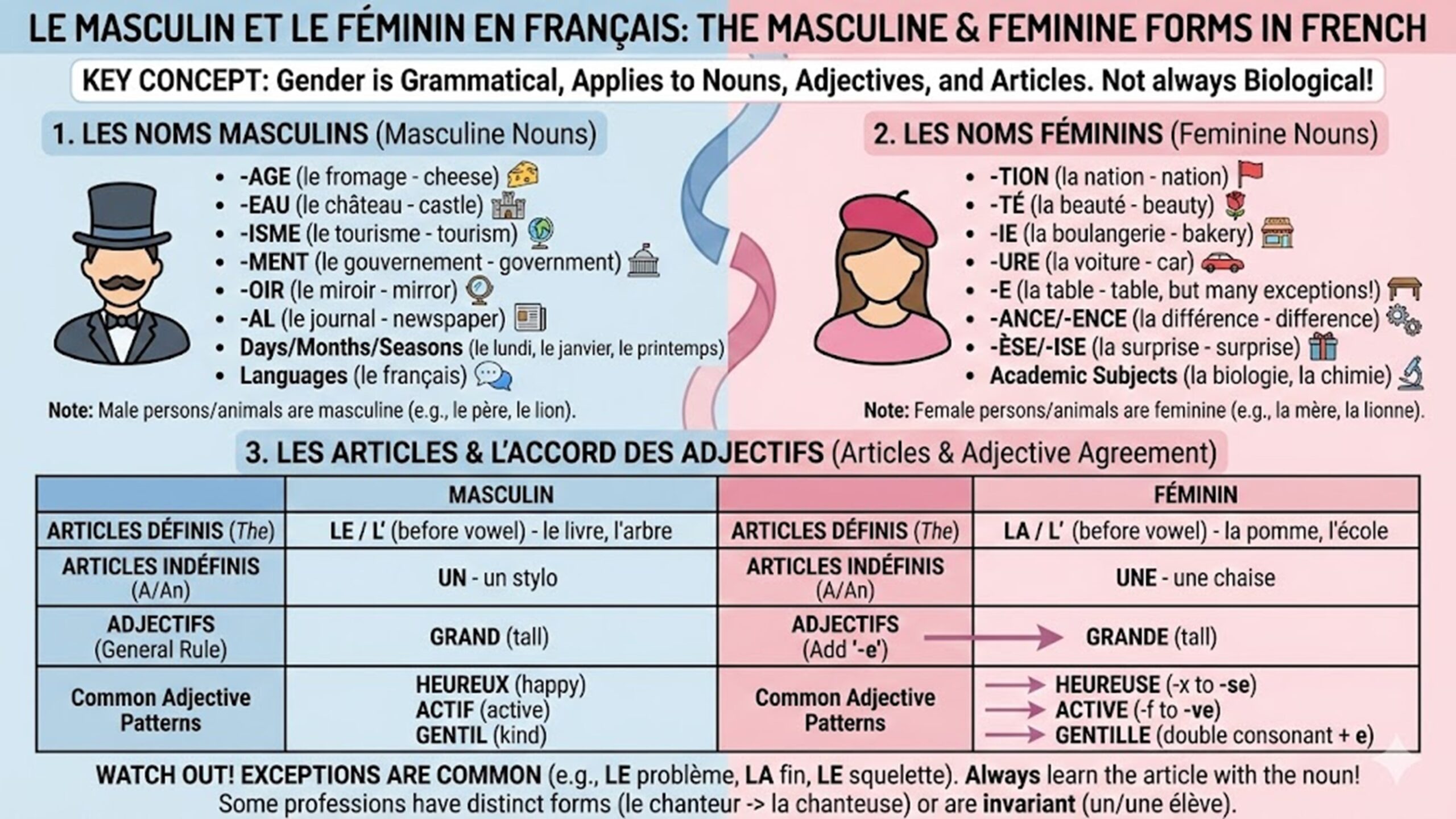 • Les noms masculins et les noms féminins en français