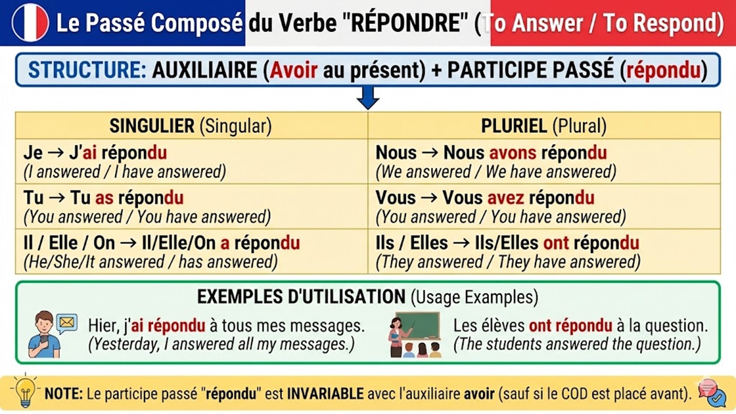 Le verbe Répondre au Passé composé